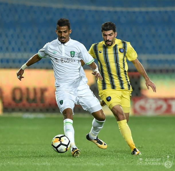 بطاقة صفراء من نصيب ريان الموسى لاعب التعاون بعد تدخل عنيف على وليد باخشوين لاعب الأهلي.
